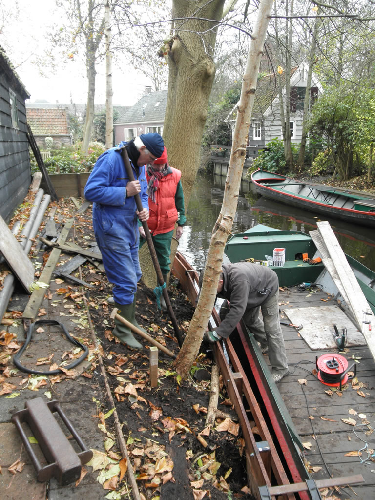 Foto's. November 2011: Nieuwe beschoeiing achter opslagschuur - Foto's G. Doornenbal December 2010: Koek en Zopie Havenrak - IJspret Havenrak - Inrichten Koek en Zopie - Foto's E. Koot Januari 2010: Koek en Zopie Havenrak - IJspret Havenrak - Drukte op het Havenrak 1986: Havenrak met uiterst rechts de oude koek en zopie - Slede met zicht op Leeteinde - Foto's J. de Waal |